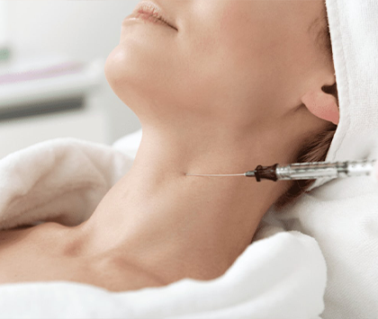 DESCRIPTION: Botulinum toxin injections an be used in the neck area to relax specific muscles that contribute to visible signs of aging and neck fine lines.